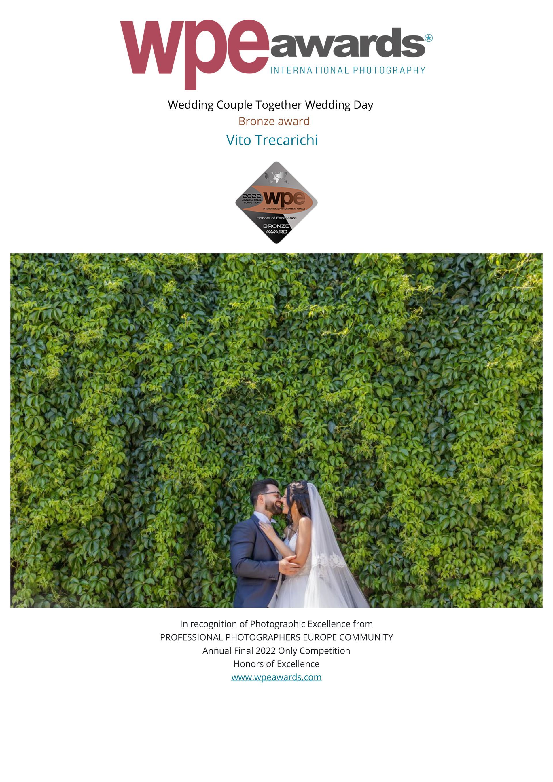 Vito Trecarichi opera come fotografo da oltre 10 anni: inizialmente autodidatta, da sempre amante del racconto per immagini, si è specializzato nella fotografia di matrimonio cercando soluzioni di scatto sempre più nuove e creative. Il professionista ha ampliato il suo parco attrezzature nel corso del tempo e ha saputo inoltre perfezionare il lato tecnico anche in fase di post-produzione, al fine di raggiungere risultati di stampa omogenei e pienamente soddisfacenti.